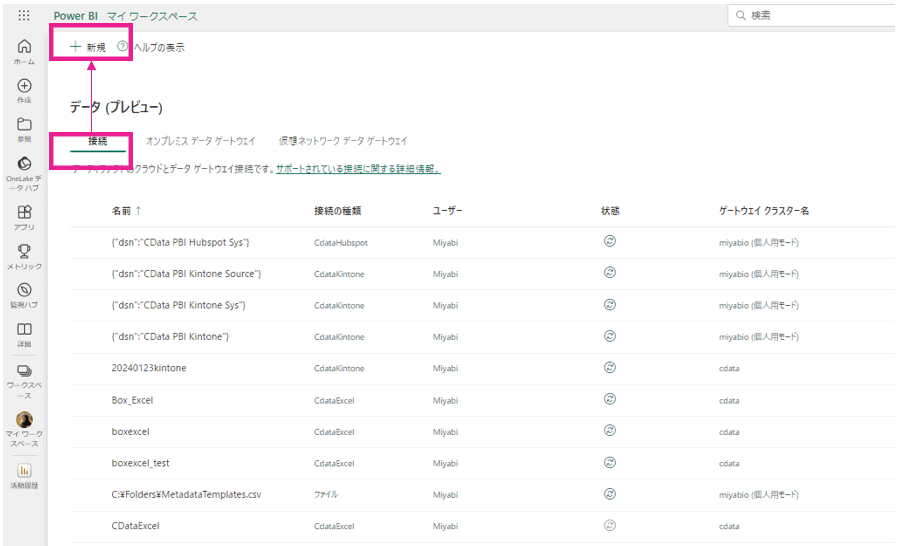 4.オンプレミスデータゲートウェイからPower BI Service に繋ぐ