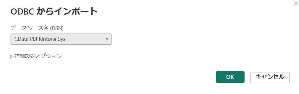 データソース名を「CData PBI Kintone Sys」に設定してください。