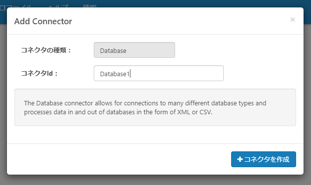 任意のConnector Id を入力し「+コネクタを作成」をクリックします。