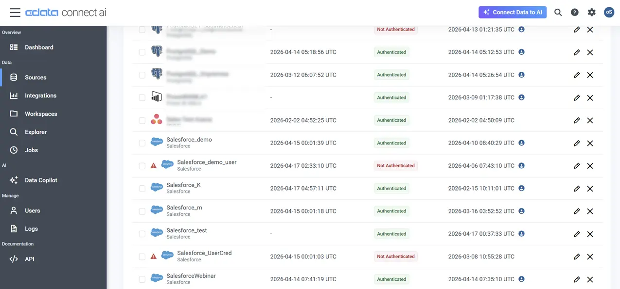 なお、CData Connect AI の Sources 内にある以下のように、同じデータソースの