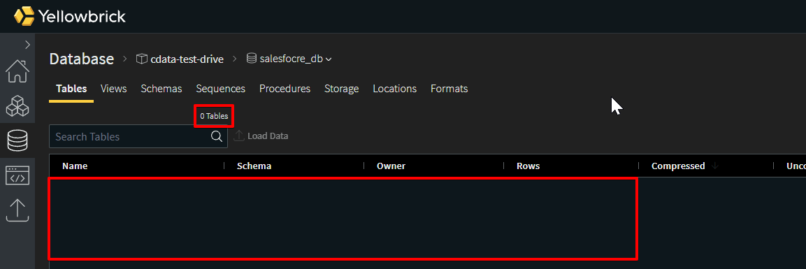 これは対象DBへの権限が、このYellowbrick 管理画面にログインしているアカウントに振られていないことが原因です。