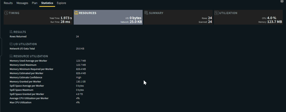 また、実行結果からYellowbrick上のCPUやメモリの利用状況を確認することができるようですね。