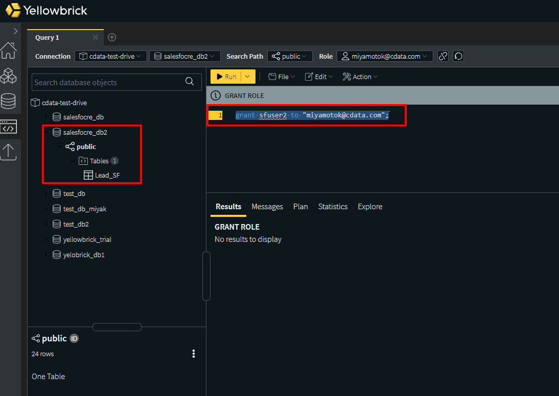 とはいえやることは、Yellowbrick 内の PostgreSQL に任意の DB とユーザー権限を付与するだけになります。