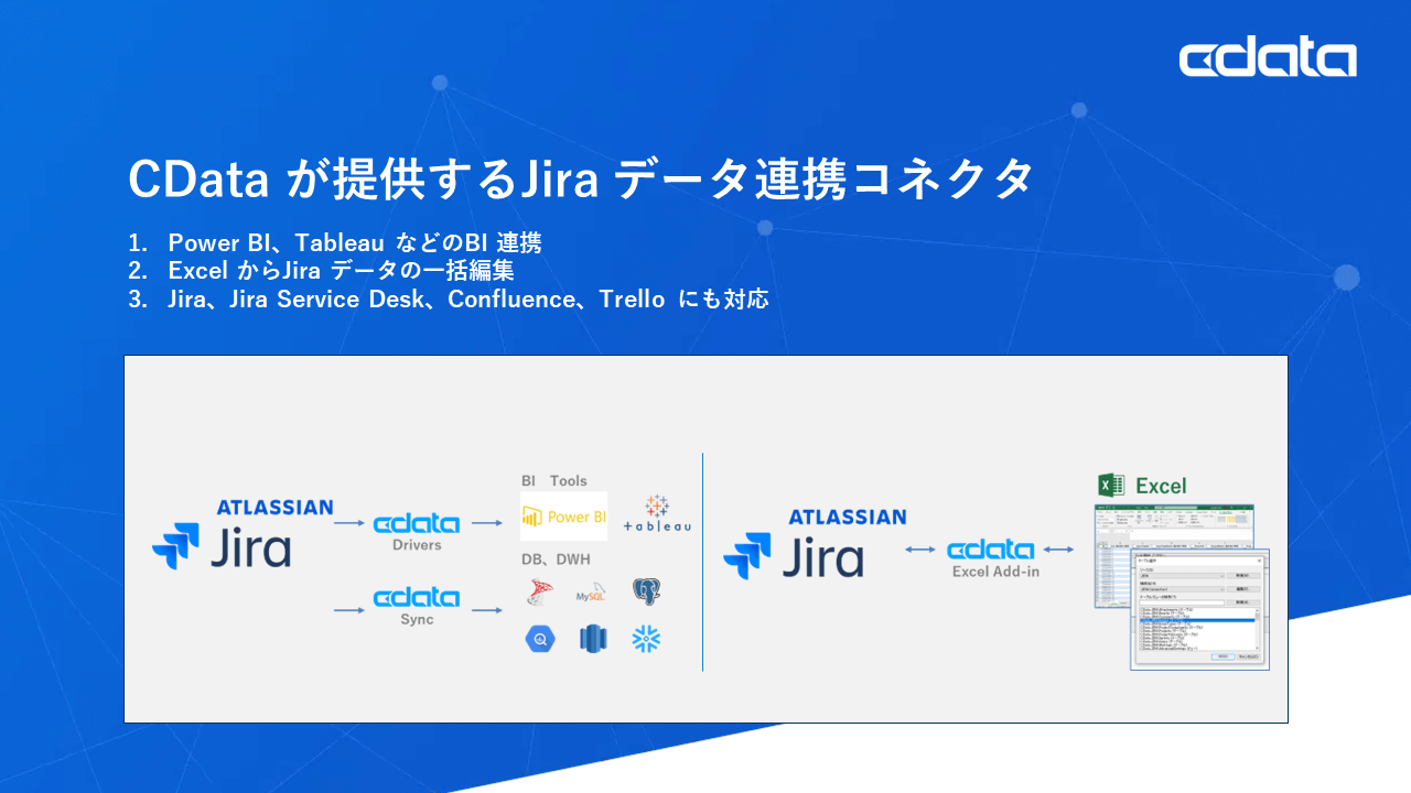 CData では、Jira をはじめとする複数のアトラシアン製品にデータ連携するコネクタ・ソリューションを提供しています。イベントブースでは、CData によるJira 連携製品を紹介します。