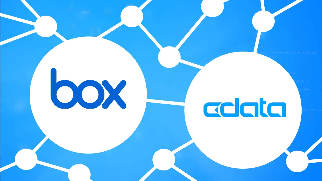 CData Connectors は、Box データにSQL ベースでのアクセスを実現します。ODBC / JDBC / ADO / Python などのドライバー、Excel / SSIS / Power BI / Tableau などの各種コネクタを提供しています。本製品を経由したBox API へのコールは基本的には非課金です。