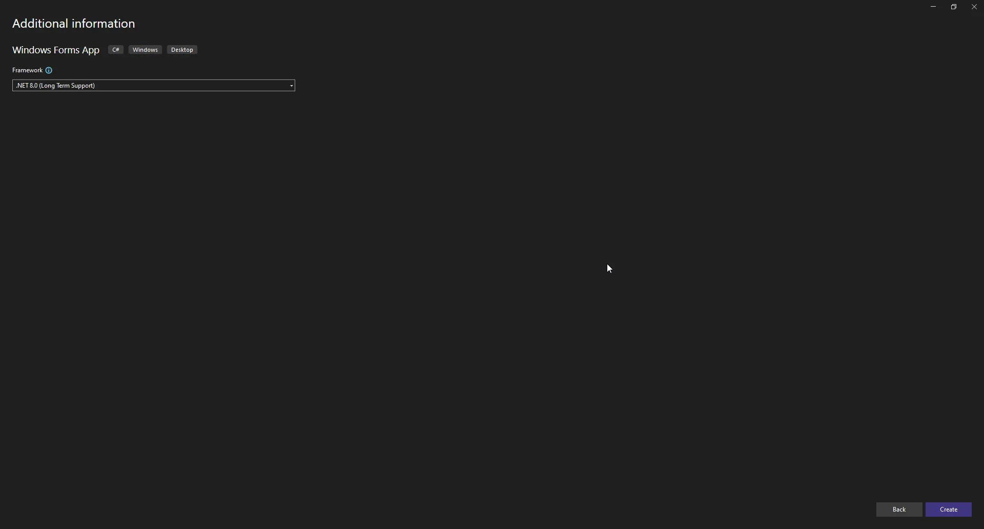 1. Visual Studio を開き、新しい「Windows Forms App」プロジェクトを作成します。