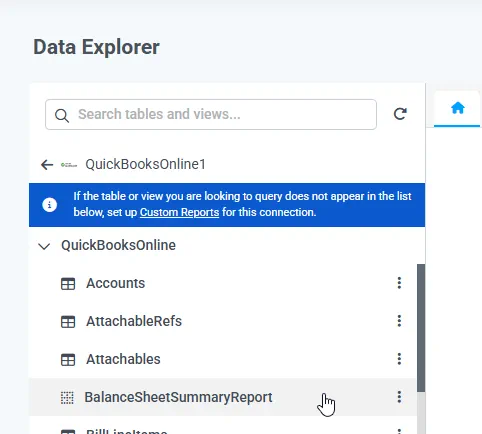 新しいカスタムレポートは、Data Explorer やサードパーティの統合ツールから、他のテーブルやビューと同様に表示できます。