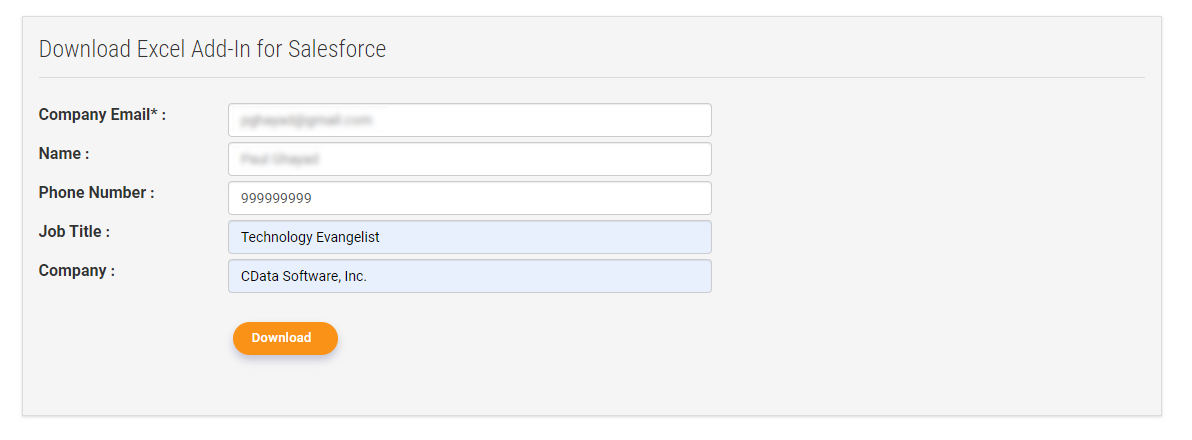 まず、CData Web サイトから Excel Add-In をダウンロードしてインストールします: https://jp.cdata.com//drivers/salesforce/download/excel/