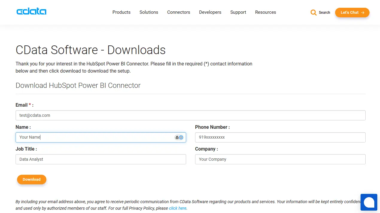- CData Web サイトの CData Power BI Connector for HubSpot ページにアクセスします。