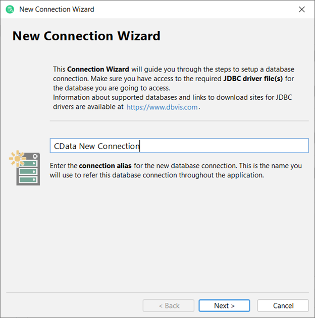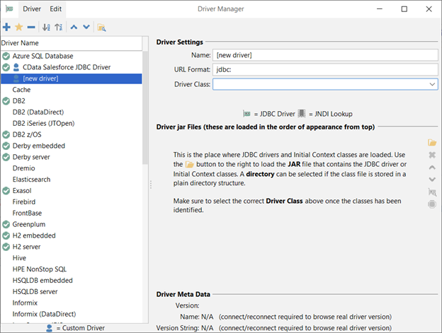 次の画面で、先ほど設定した新しいCData JDBC Driver を選択します。