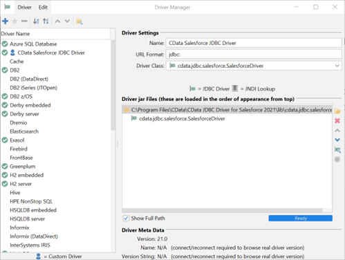 この記事ではSalesforce JDBC Driver を例として使用していますが、ここで説明する手順は CData がサポートする250 以上のデータソースすべてに適用できます。