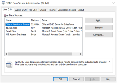 この記事では Salesforce ODBC ドライバーを例に説明していますが、CData がサポートする 250 以上のデータソースにも同様の手順が適用できます。
