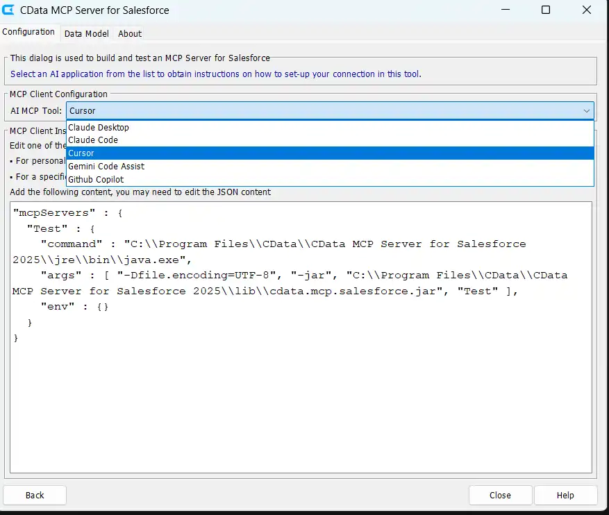 - CData Code Assist MCP for Salesforce をダウンロードしてインストールします