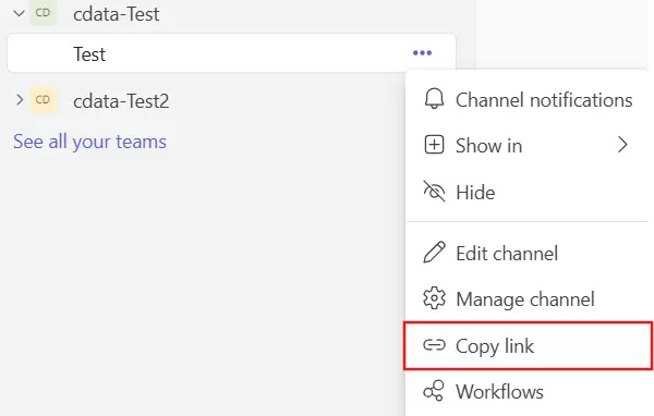 CData ドライバーを使用して Microsoft Teams チャネルにメッセージを送信する