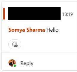 EXECUTE SendMessage Content = ' Hello', ContentType = 'html', TeamId = '477a1356-b063-4320-9dab-fe5e735ea9c7', ChannelId = '19:[email protected]', Mention = 'Somya Sharma,819d298e-ffef-4616-a8ee-8ecb082fa5a2';