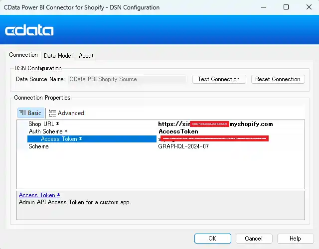 ステップ1:Shopify GraphQL に接続する DSN を設定する