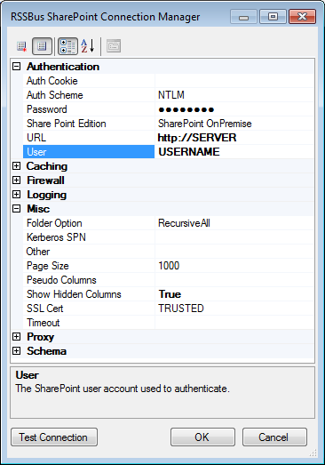 - CData SharePoint Source で、新しい接続マネージャーを追加し、SharePoint サイトの資格情報を設定します。