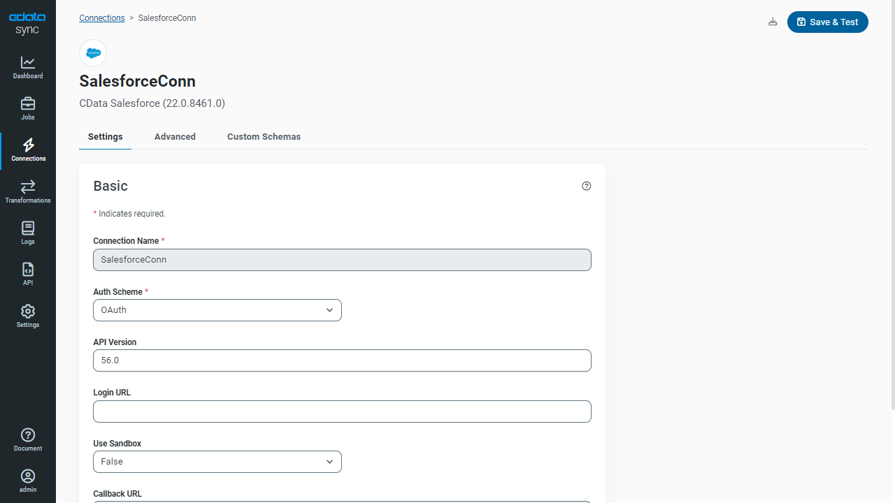 - Connections タブに移動して、データソースを選択します。ここでは Salesforce を使用します。