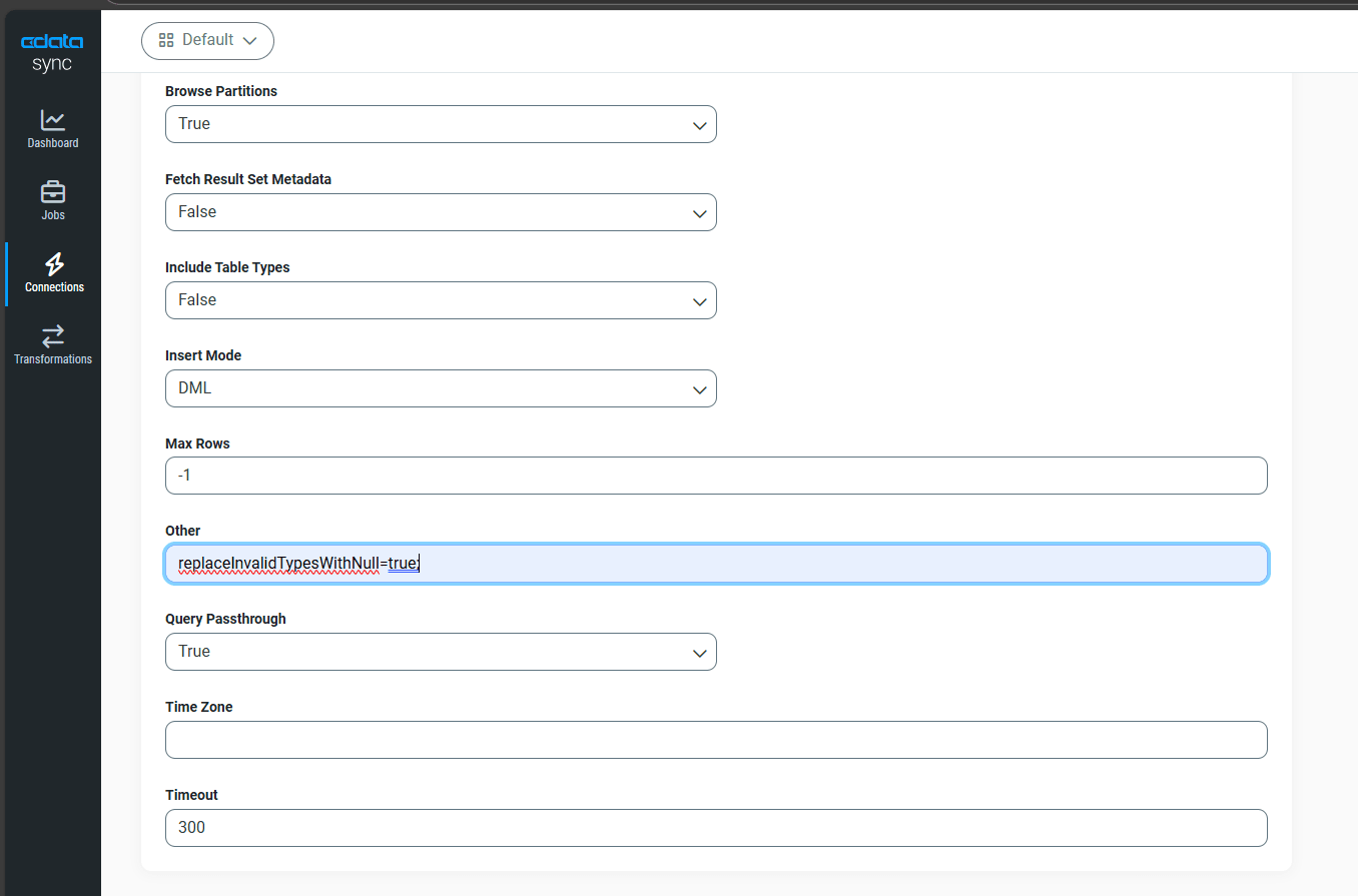 CData Sync は、設定オプションやカスタムクエリを使用して、これらの特殊な無限大値を標準的な有限値に変換できるため、この問題を解決します。これにより、システム間でスムーズなデータ統合が可能になります。