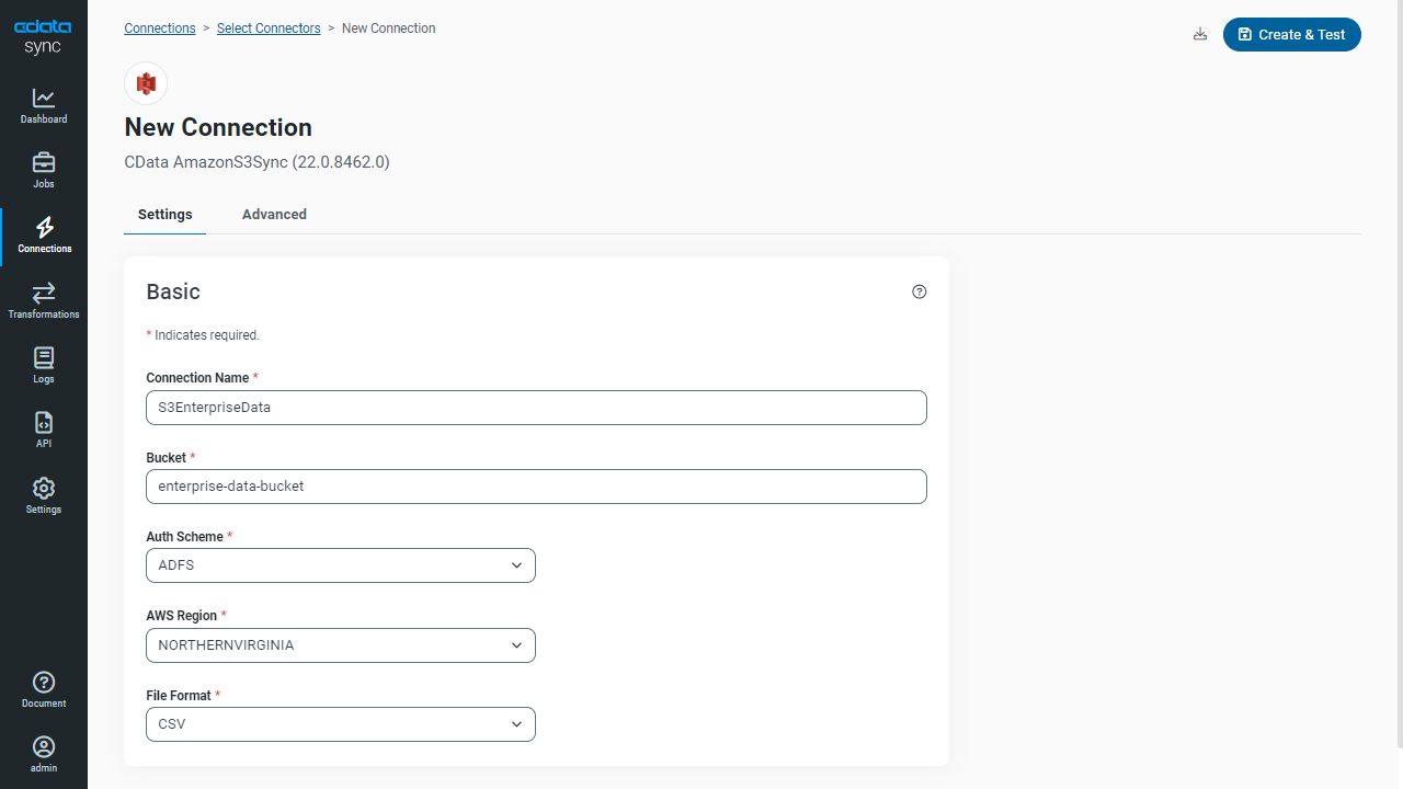 バケットの設定が完了したら、CData Sync からレプリケーション先として Amazon S3 に接続する準備が整いました。