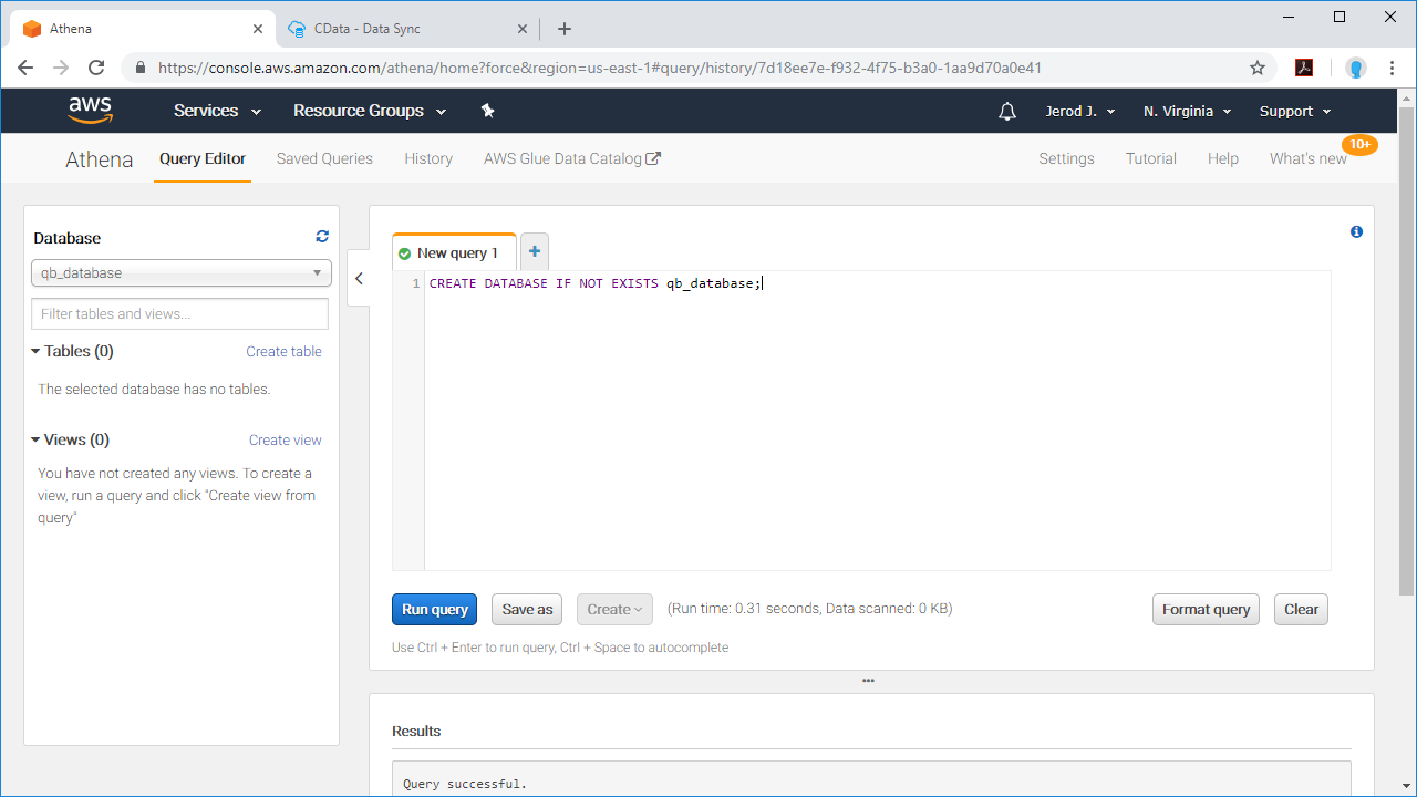 Amazon Athena を使用すると、SQL で S3 データをクエリできます。Amazon S3 にレプリケーションされたデータで Amazon Athena を使用するには、Amazon Athena コンソールに移動し、`CREATE DATABASE IF NOT EXISTS