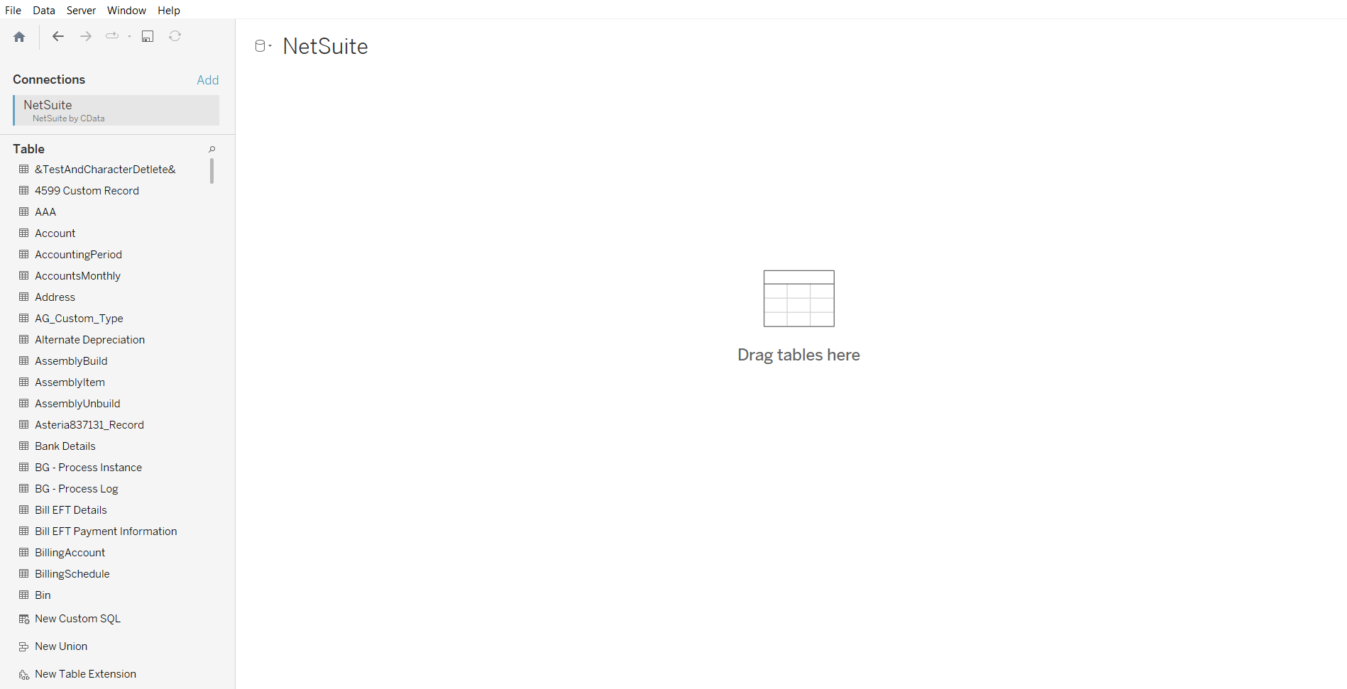 Tableau Desktop を開き、「サーバーへ」の見出しの下にある「Netsuite by CData」をクリックします。
