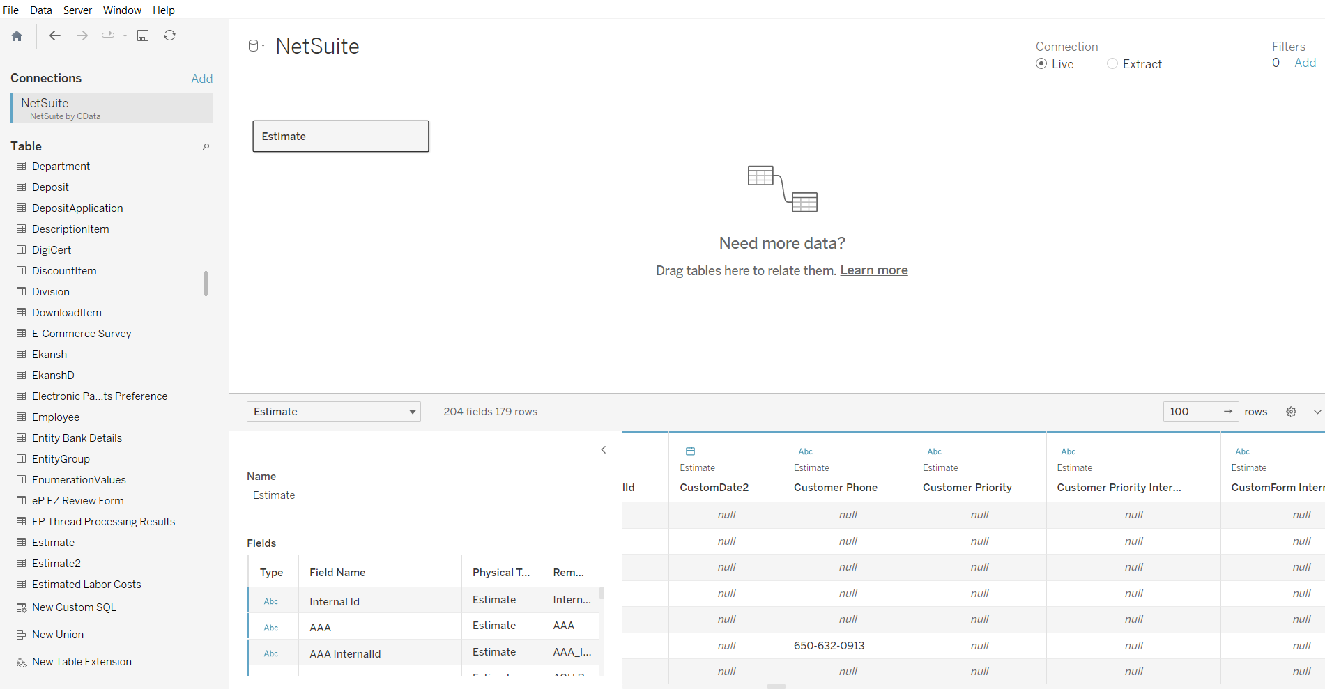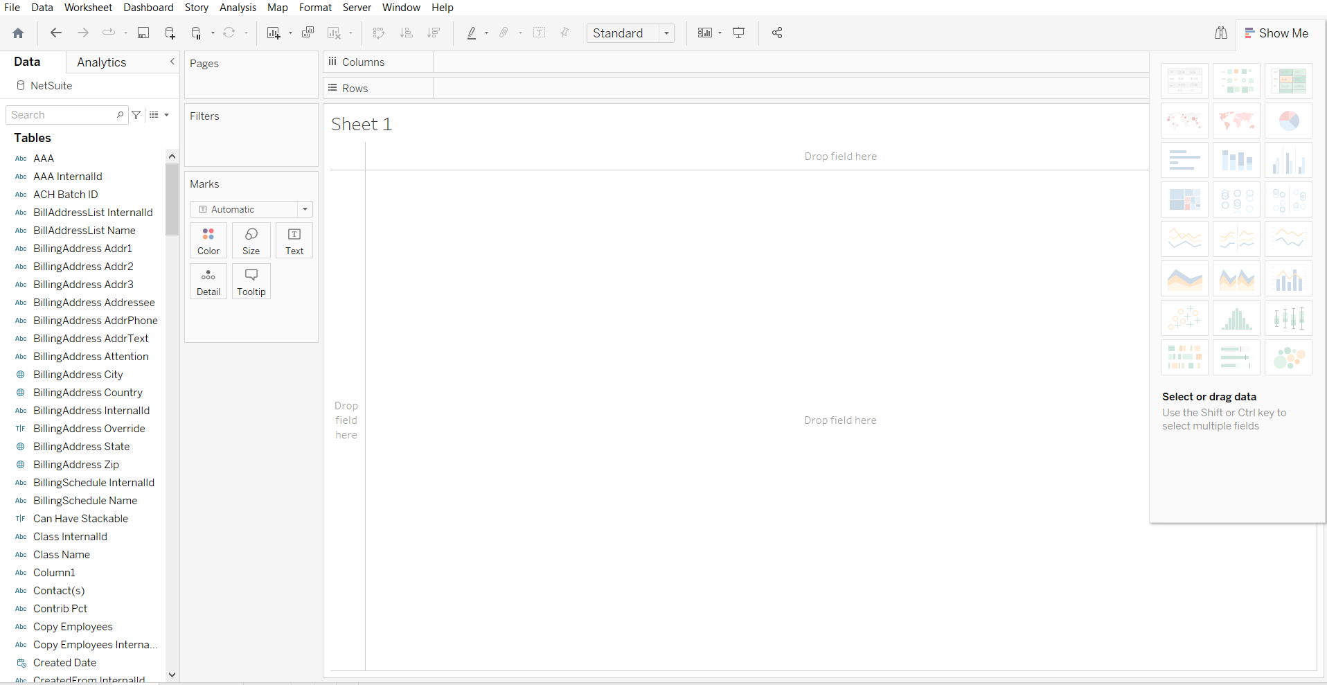 Tableau Desktop をインストールしたら、以下の手順で NetSuite 接続からデータを取得します: