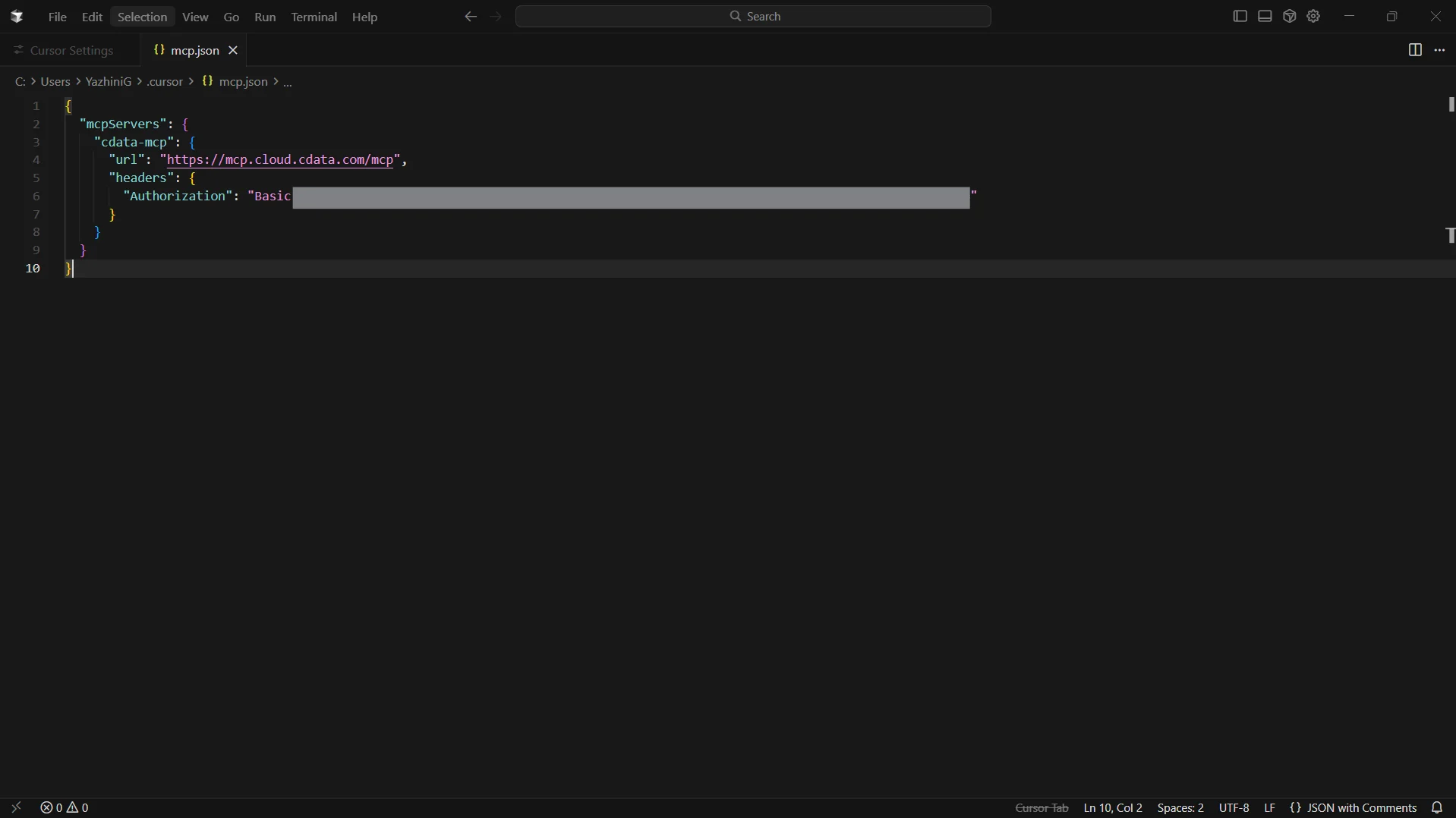 ステップ 2:Cursor で CData MCP Server を設定