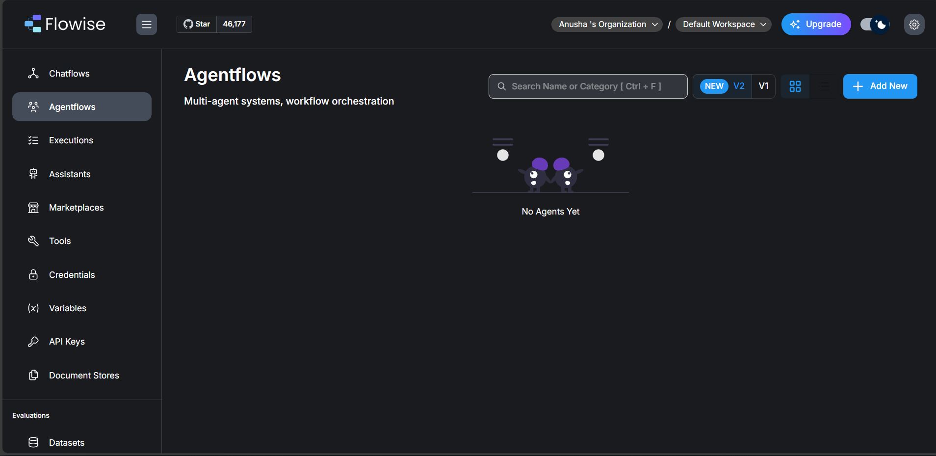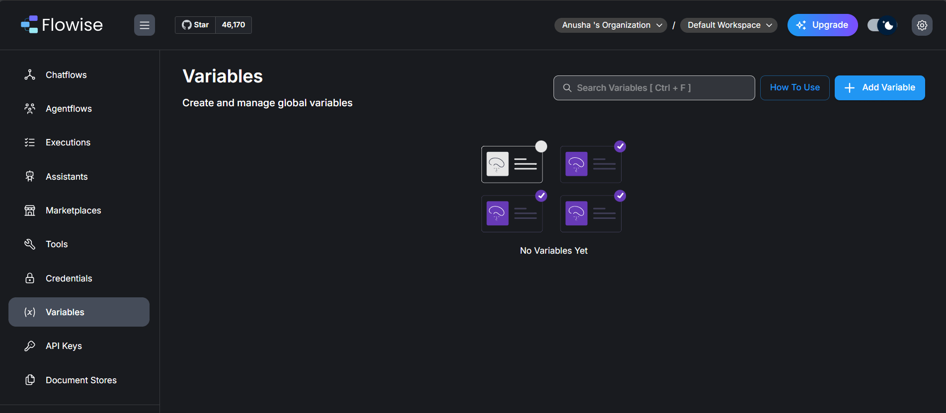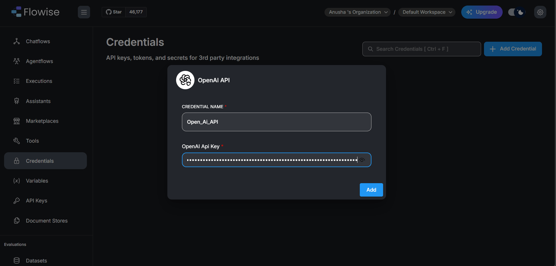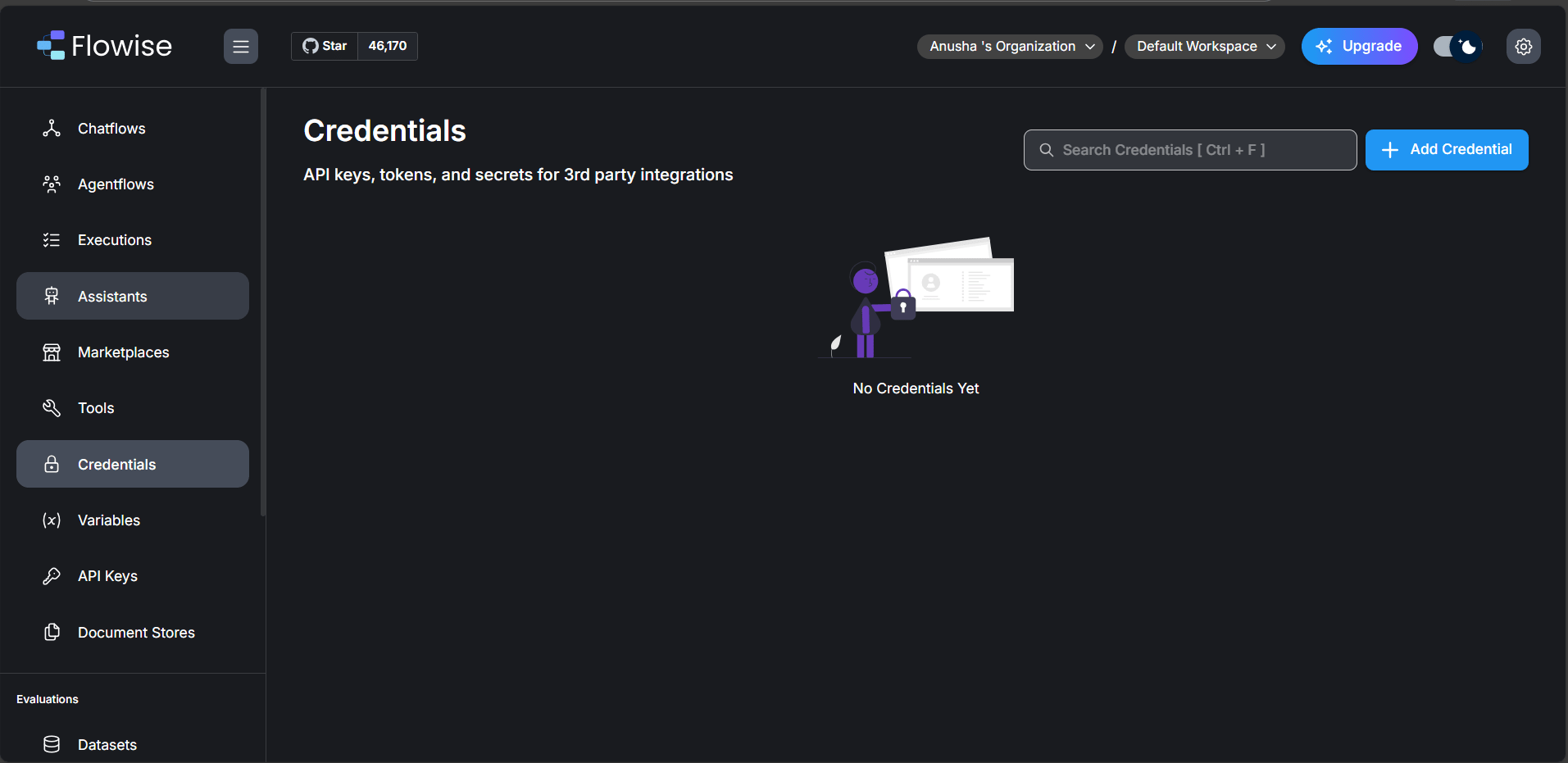 Flowise AI ワークスペースにログインして統合をセットアップします。