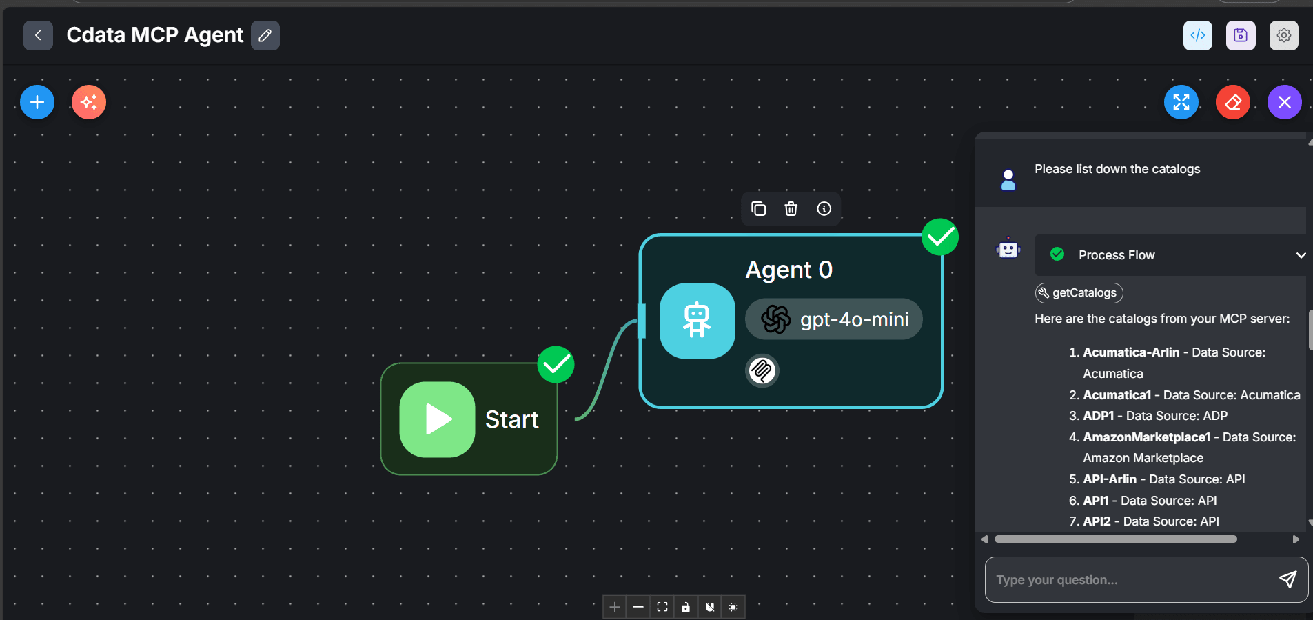 API 接続の設定と PAT の生成が完了したら、Flowise AI から CData MCP Server 経由でAPI のデータに接続できます。
