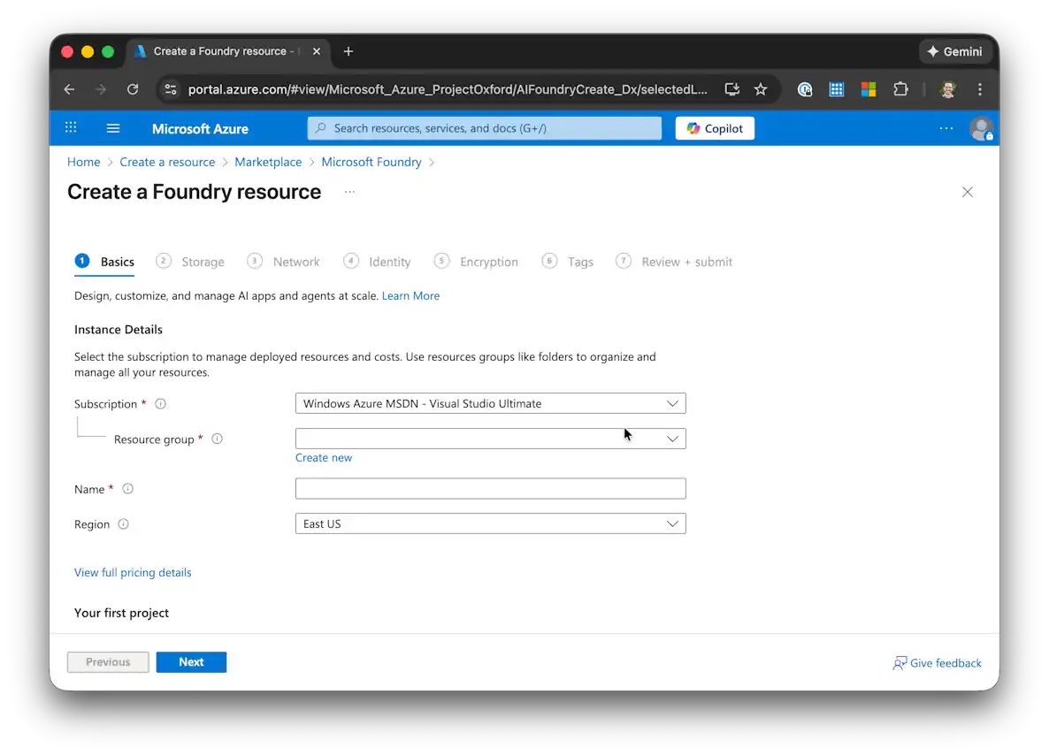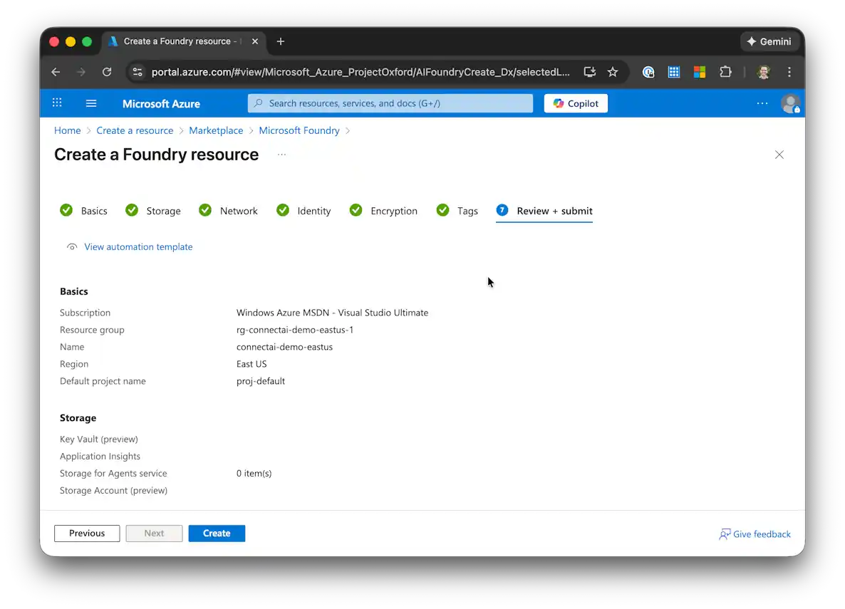 ステップ 1:Azure AI Foundry リソースを作成