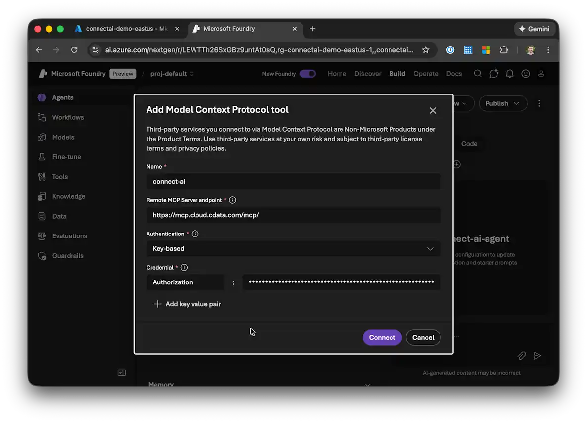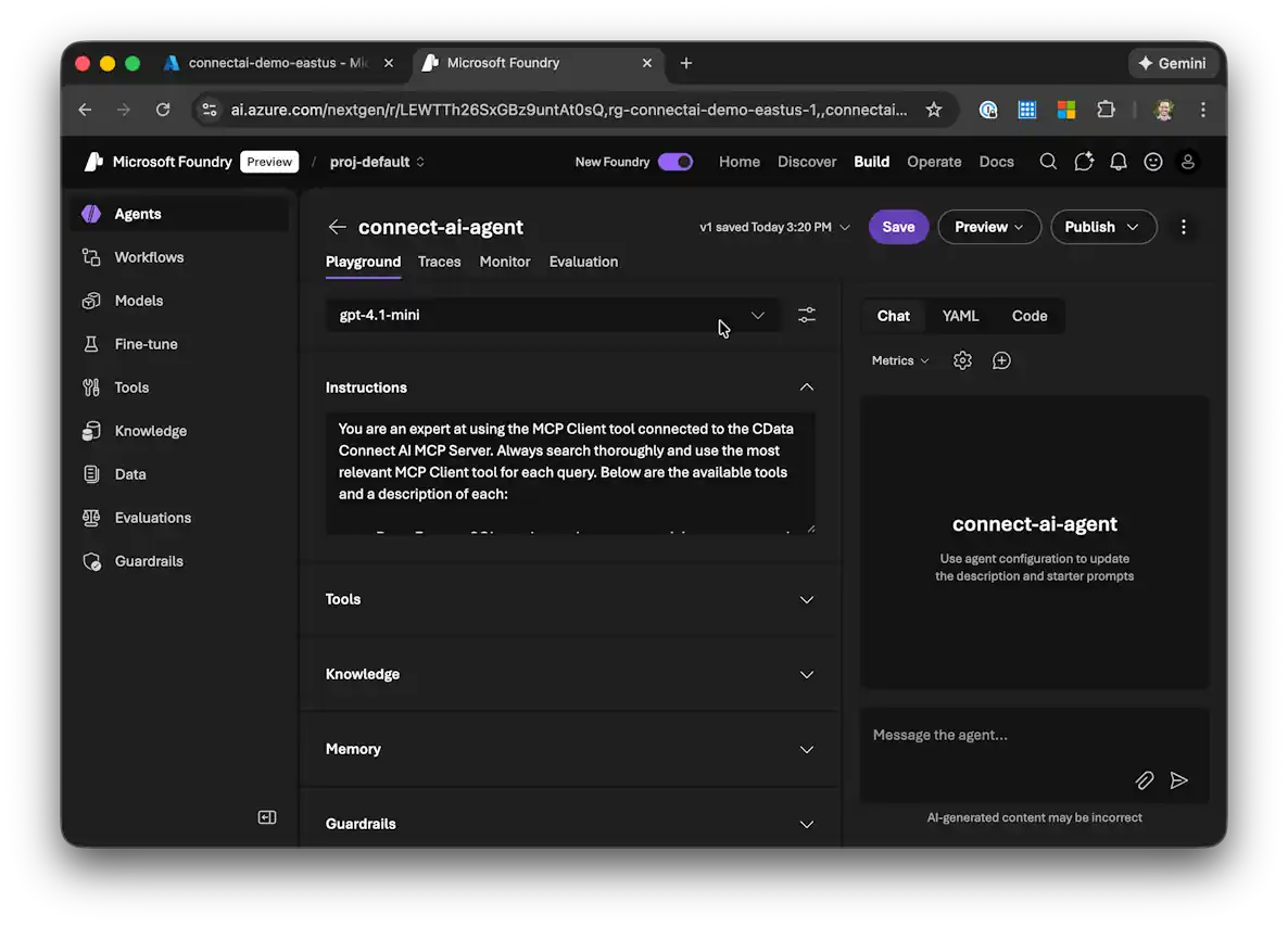 CData Connect AI を使用して Azure AI Foundry から API のデータ と会話
