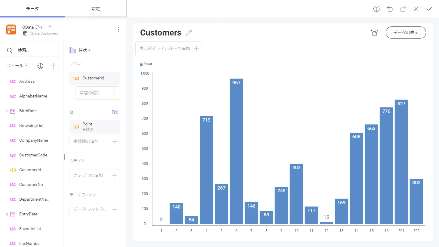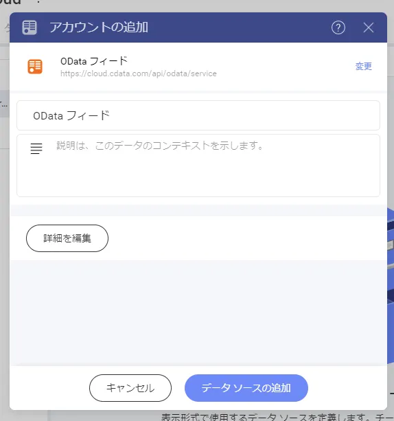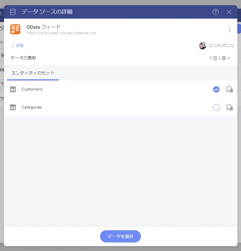 - 先程追加したCData Connect AI へのOData フィードデータソースが表示されるので、これを選択します。