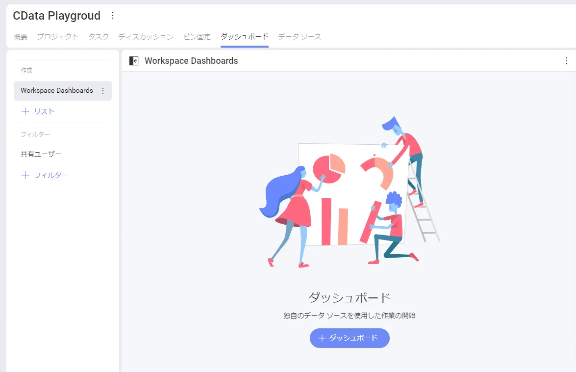 - 「ダッシュボード」タブに移動して「+ダッシュボード」をクリックします。
