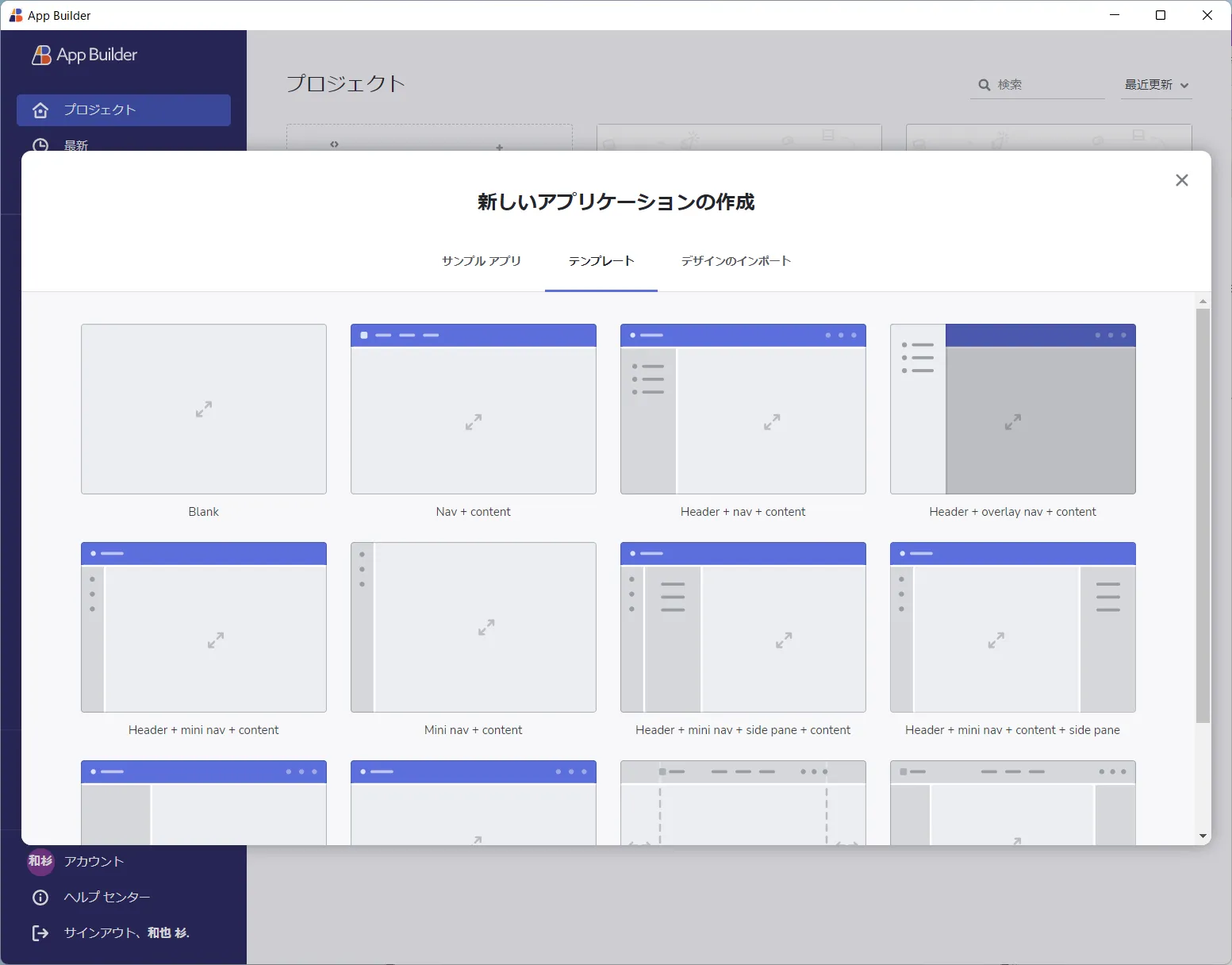 App Builder でプロジェクトを作成する