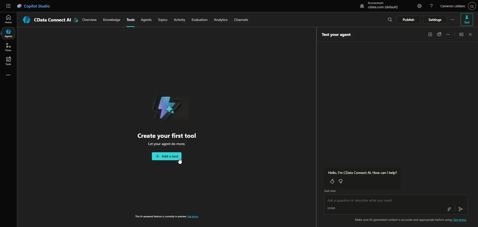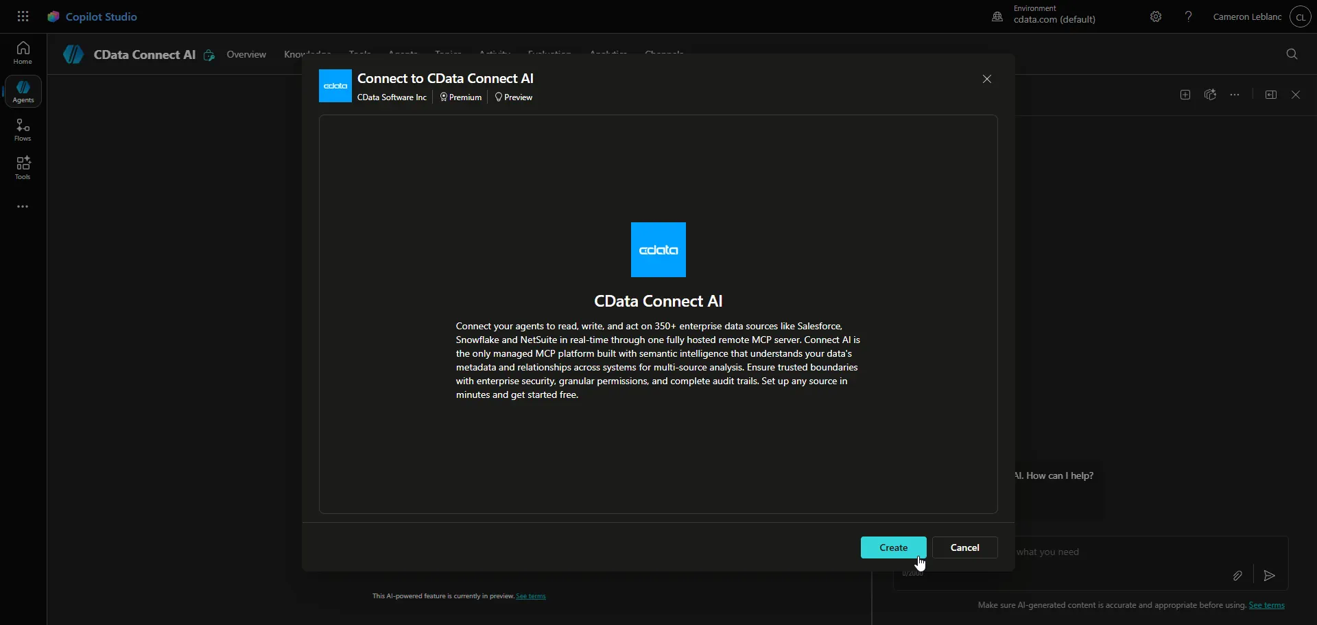 ステップ 2: Microsoft Copilot Studio からCData Connect AI に接続