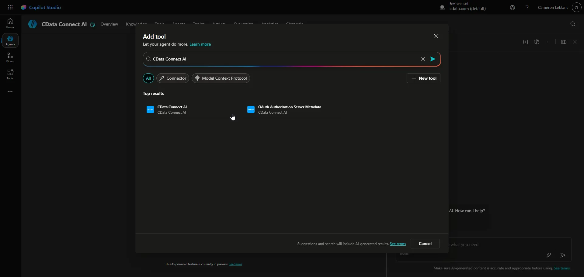 Add Tool ウィンドウで、CData Connect AI を検索してクリックします。