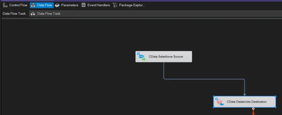 Data Flow Task に CData Databricks Source コントロールと CData Databricks Destination コントロールを追加します。