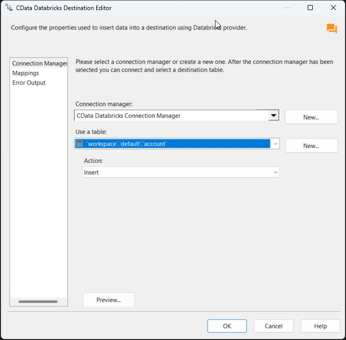 CData SSIS Components を使用して Databricks のデータを Databricks にマイグレーション