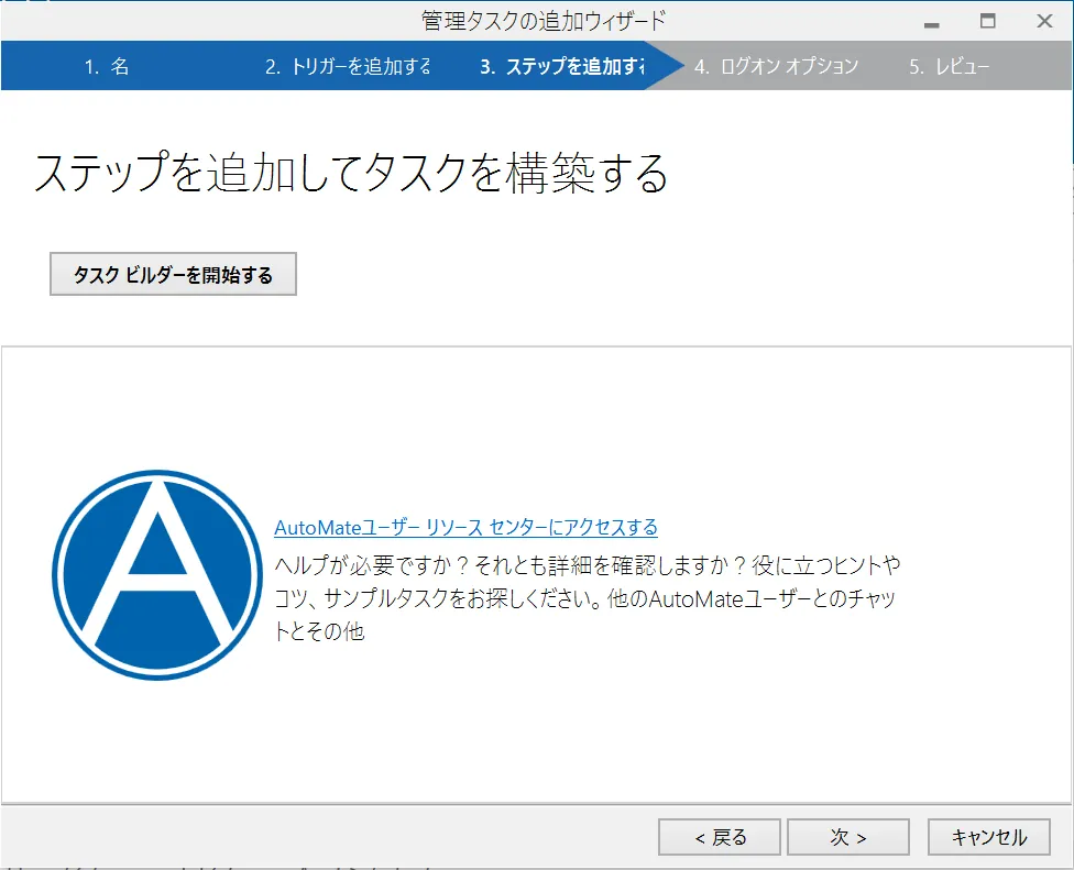 - トリガーを追加し、タスクビルダーを起動します。「タスクビルダーを開始する」をクリックします。