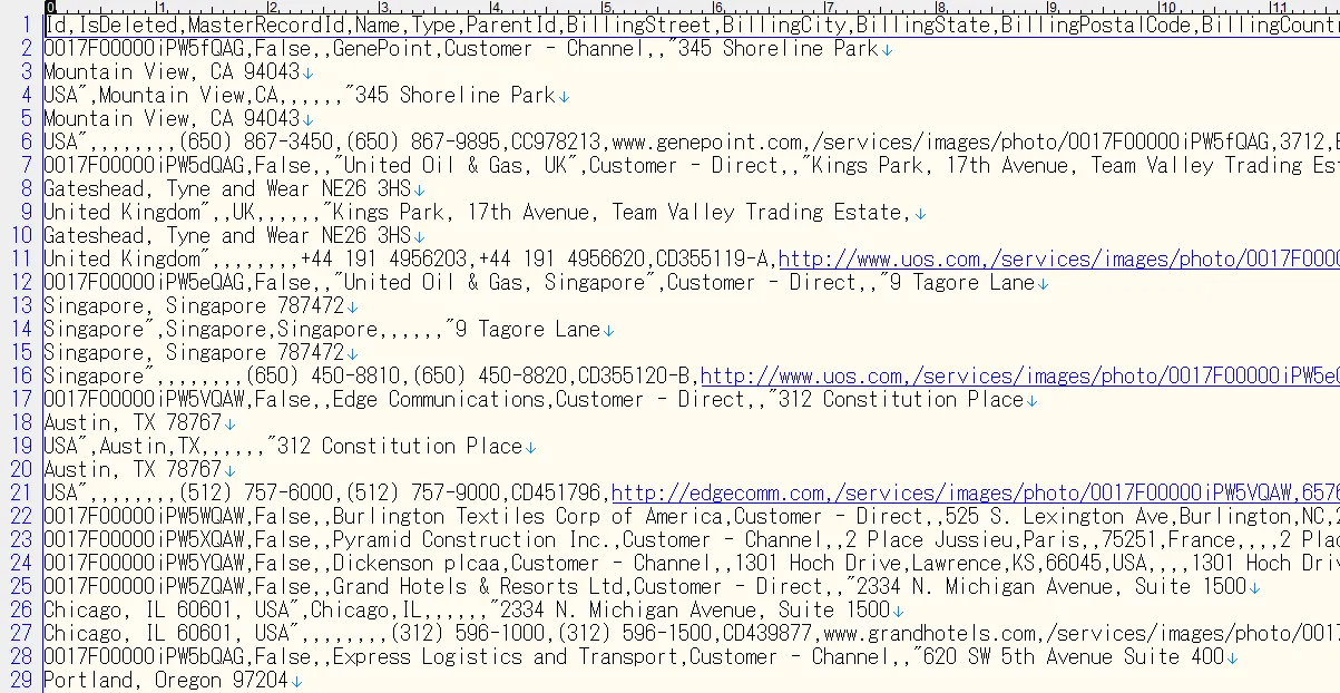 - 指定したCSV ファイルを開きます。正常にOracle Eloqua Reporting のデータを元にしたCSV ファイルが生成されていました。