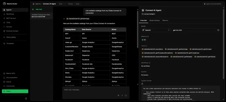 この記事では、CData Connect AI MCP 接続を設定し、Mastra Studio で MCP サーバーを登録し、リアルタイムの GitHub データをクエリするエージェントを構築するために必要な手順を説明します。