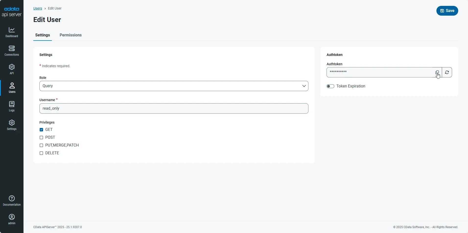 次に、API Server を通じてGitHub のデータにアクセスするユーザーを作成します。Users ページでユーザーを追加・設定できます。以下の手順でユーザーを設定・作成します。