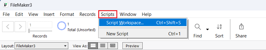 - New Script を選択して新しいスクリプトワークスペースを開きます。