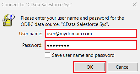 まだ設定していない場合は、最初に ODBC DSN(データソース名)で接続プロパティを指定します。これはドライバーインストールの最終ステップでもあります。Microsoft ODBC データソースアドミニストレーターを使用して ODBC DSN を作成・設定できます。