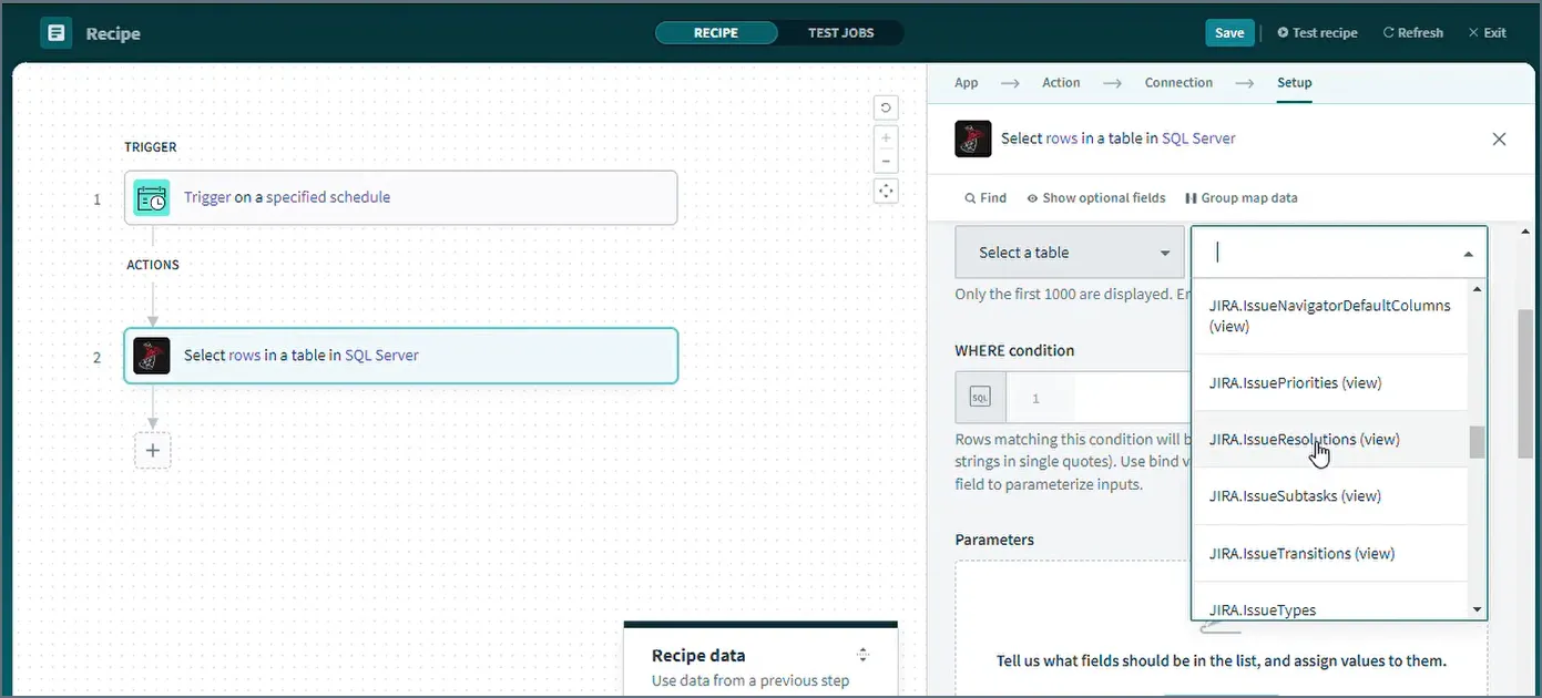 - Test Jobs をクリックしてレシピをテストします。