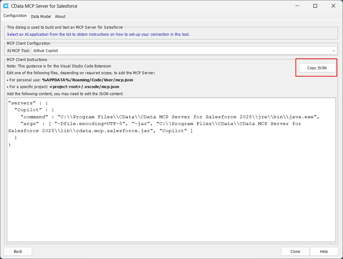 方法2:CData Code Assist MCP for Jira の UI から MCP 構成をコピーする