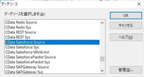 - 先ほど作成したODBC DSN の接続設定を選択します。