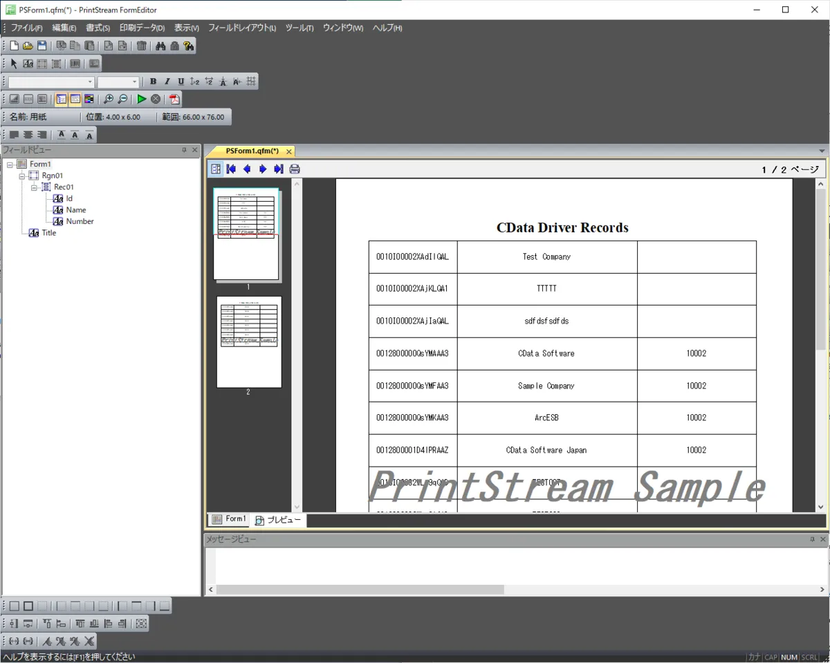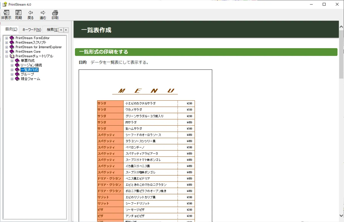 - 詳しい手順は割愛しますが、ヘルプの「PrintStream」チュートリアルにある「一覧表作成」を参考にしてみてください。