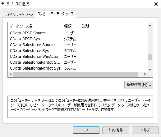- 「コンピューターデータソース」の一覧から先ほど設定したODBC DSN を選択します。